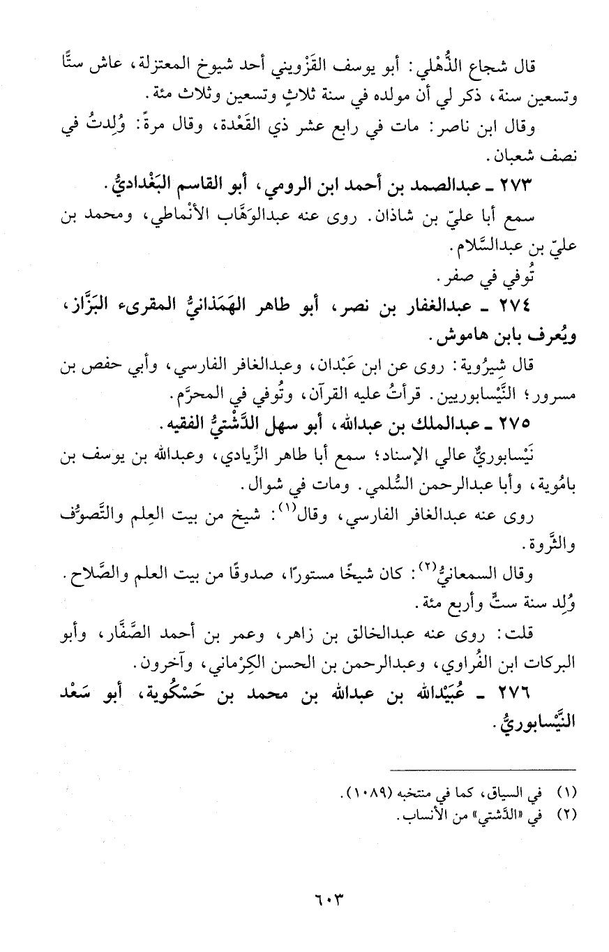 276 - عُبَيْد الله بْنُ عَبْد الله بن محمد بن حَسكوَيْه، أبو سعد النَّيْسابوريّ. [المتوفى: 488 هـ]-[604]-