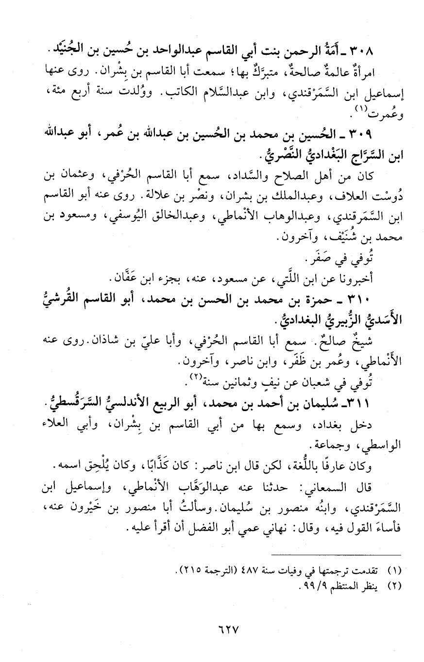 309 - الحُسَين بْن محمد بْن الحسين بْن عَبْد الله بن عمر، أبو عبد الله بن السّرّاج البغداديّ النّصريّ. [المتوفى: 489 هـ]