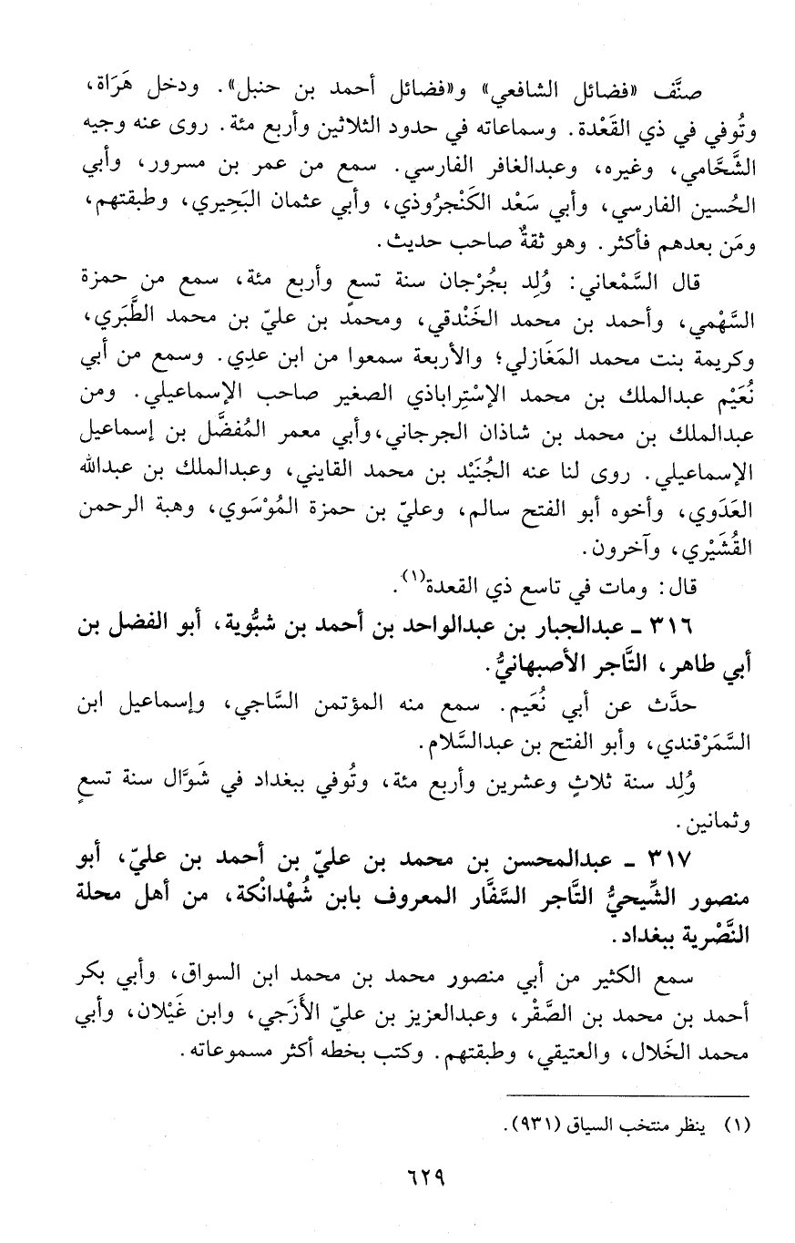316 - عبد الجبّار بن عبد الواحد بن أحمد بن شبويه، أبو الفضل بن أبي طاهر، التّاجر، الأصبهاني. [المتوفى: 489 هـ]