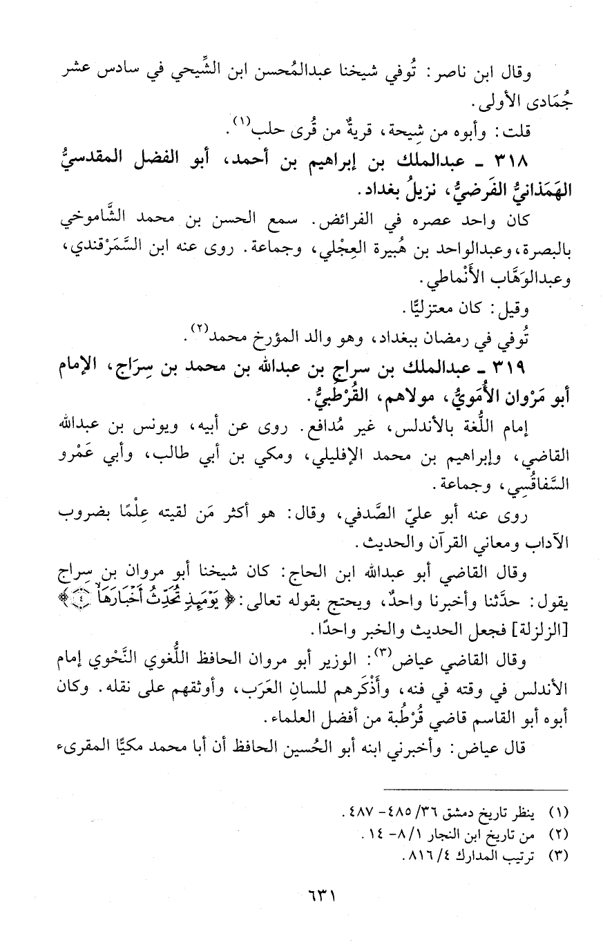319 - عبد الملك بن سِراج بن عبد اللَّه بن محمد بن سِراج، الإمام أبو مَرْوان الأُمَويّ، مولاهم القُرْطُبيّ. [المتوفى: 489 هـ]