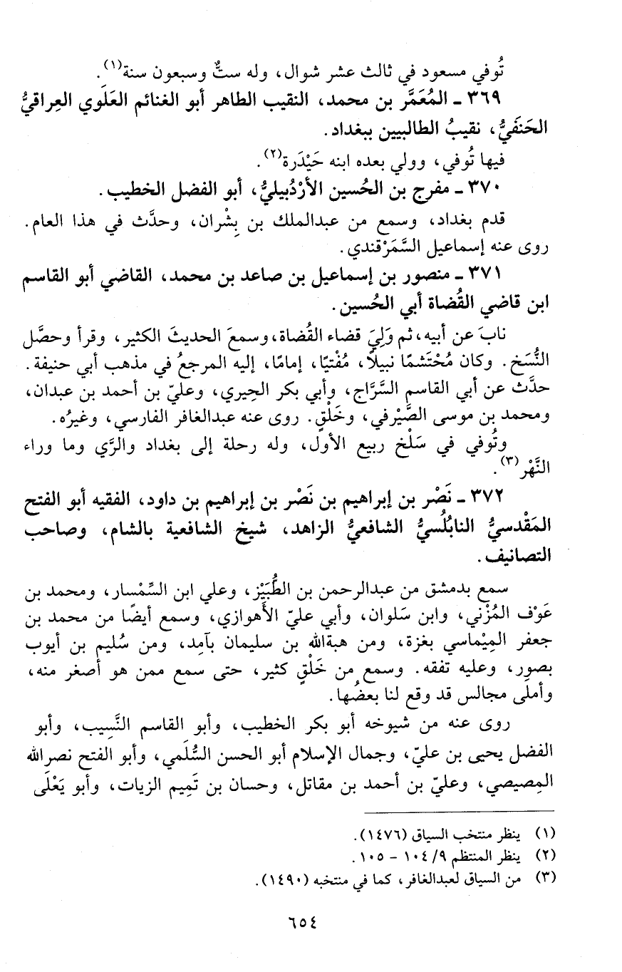 369 - المعمّر بن محمد، النّقيب الطّاهر أبو الغنائم العَلَويّ العِراقيّ الحنفيّ، [المتوفى: 490 هـ]