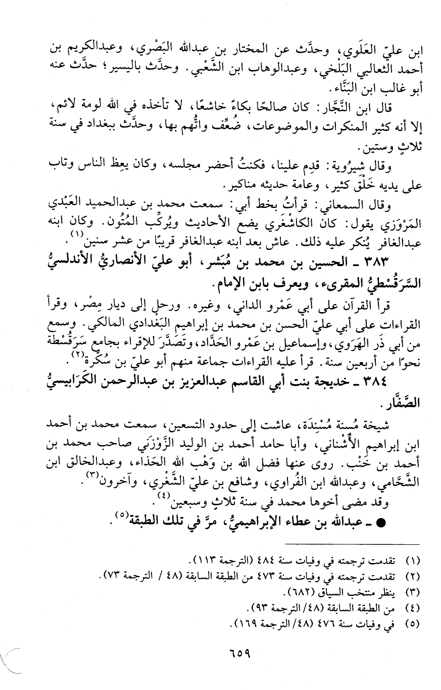 383 - الحسين بن محمد بن مبشّر، أبو عليّ الأنصاريّ الأندلسيّ السَّرَقُسْطيّ، المقرئ، ويُعرف بابن الإمام. [الوفاة: 481 - 490 هـ]