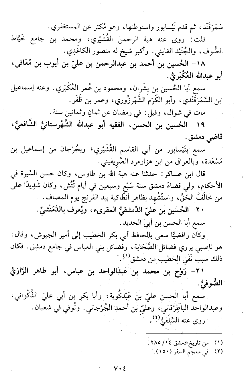 20 - الحُسين بْن عليّ الدّمشقيّ المقرئ، ويعرف بالدمنشي. [المتوفى: 491 هـ]