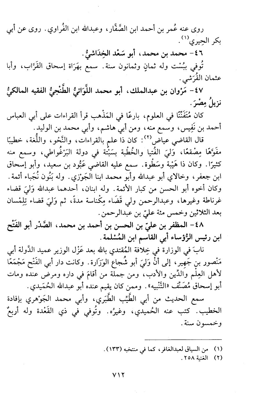 48 - المظفّر بْن عليّ بْن الحَسَن بْن أَحْمَد بْن مُحَمَّد، الصّدر أبو الفتح ابن رئيس الرؤساء أَبِي القاسم ابن المسلمة. [المتوفى: 491 هـ]