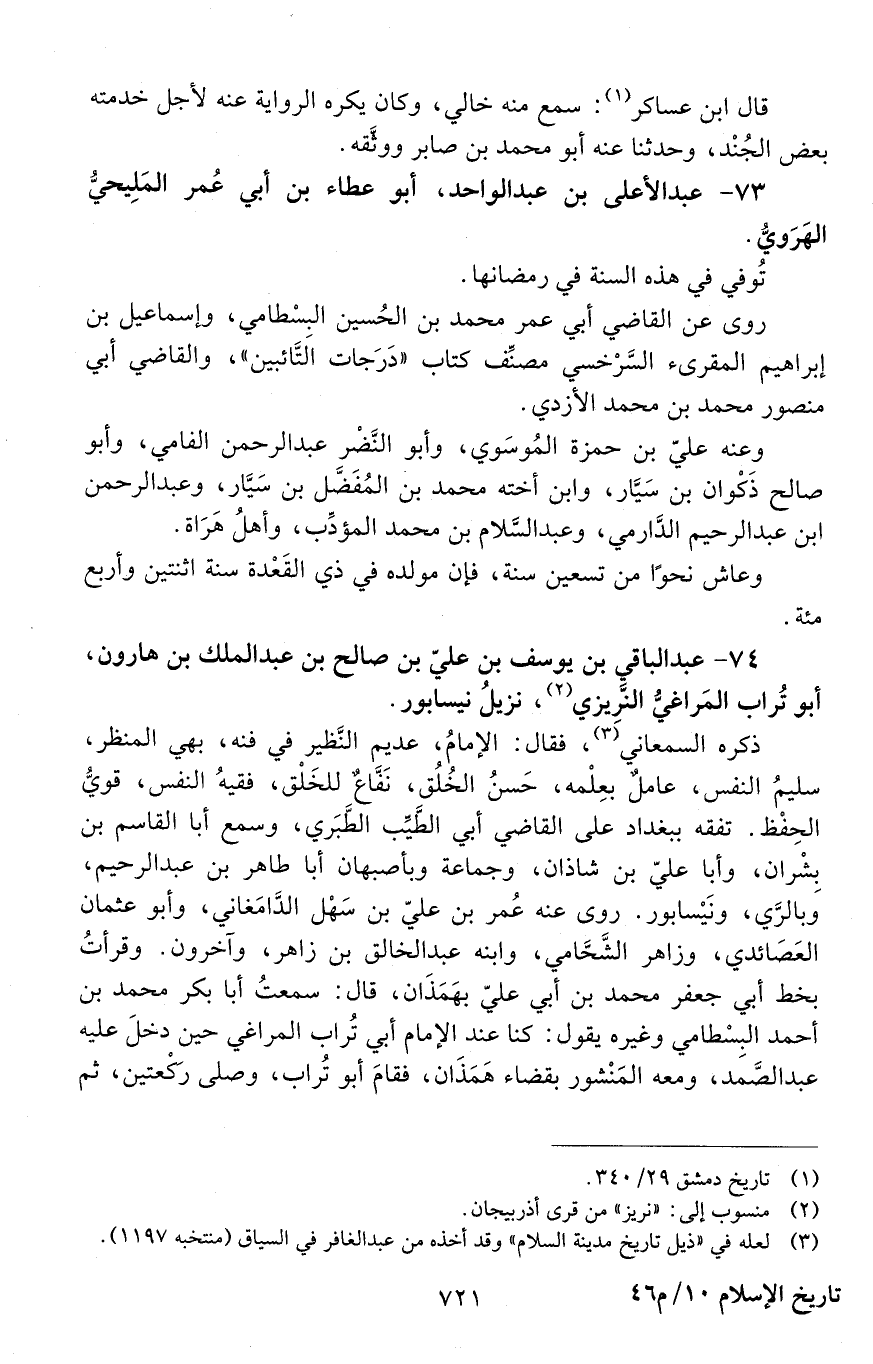 73 - عَبْد الأعلى بْن عَبْد الواحد أبو عطاء بْن أَبِي عُمَر المَلِيحيّ الهَرَوِيّ. [المتوفى: 492 هـ]