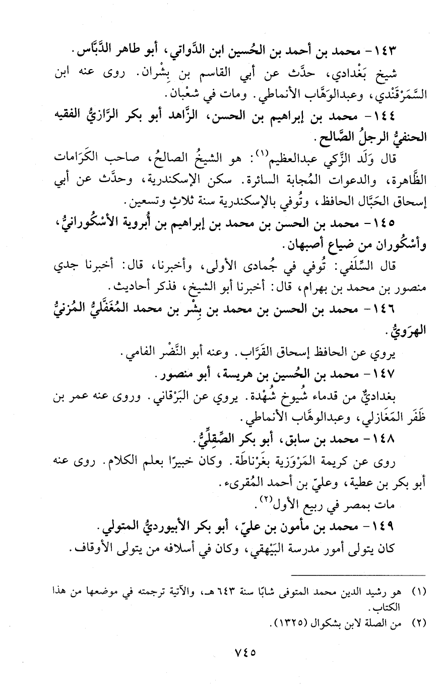 144 - محمد بن إبراهيم بن الحسن، الزاهد أبو بكر الرازي الفقيه الحنفي الرجل الصالح. [المتوفى: 493 هـ]