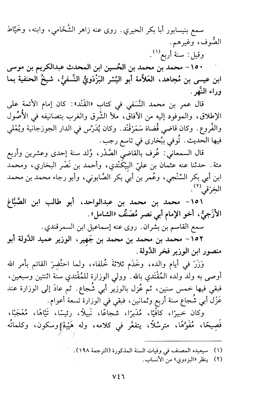 150 - محمد بن محمد بن الحسين ابن المحدِّث عبد الكريم بن موسى بن عيسى بْن مجاهد، العلّامة أبو اليسر البزدوي النَّسَفيّ، [المتوفى: 493 هـ]
