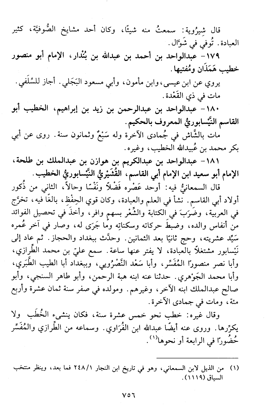 181 - عَبْد الواحد بْن عَبْد الكريم بْن هوازن بْن عَبْد الملك بن طلحة، الإمام أبو سعيد ابن الْإِمَام أَبِي القاسم القُشَيْريّ النَّيْسابوريّ الخطيب. [المتوفى: 494 هـ]