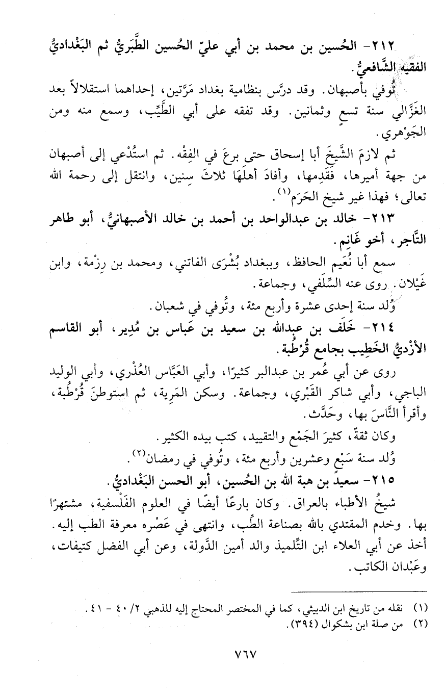 212 - الحسين بن محمد بن أبي علي الحسين الطبري، ثم البغدادي، الفقيه الشافعي. [المتوفى: 495 هـ]