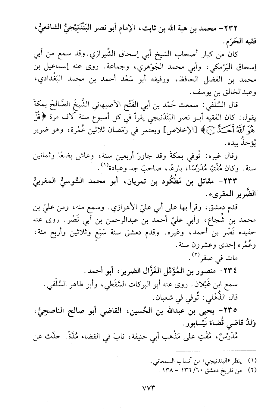232 - مُحَمَّد بْن هبة اللَّه بْن ثابت، الْإِمَام أبو نَصْر البَنْدنَيْجيّ الشّافعيّ، فقيه الحَرَم. [المتوفى: 495 هـ]