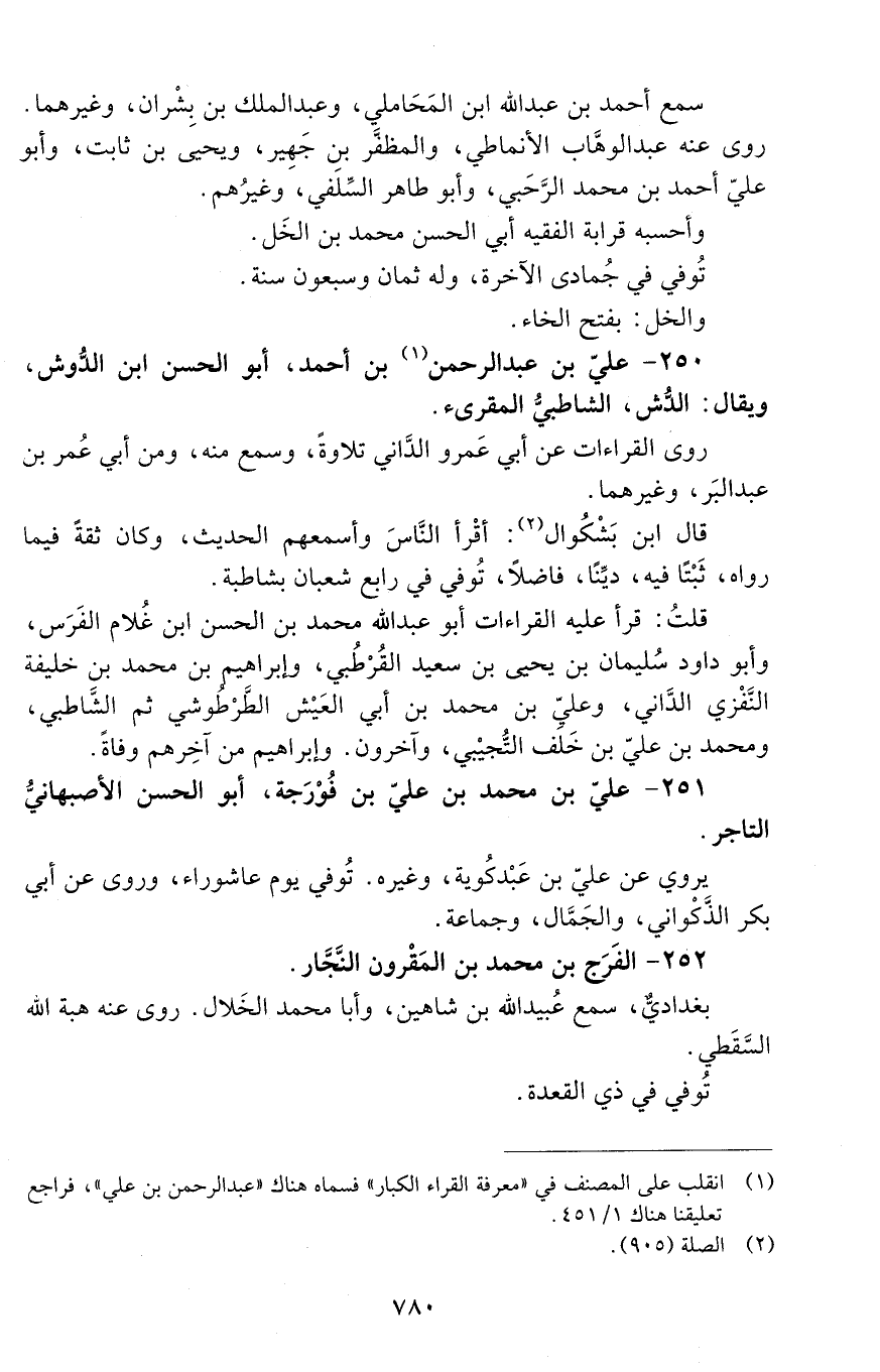 250 - عليّ بْن عَبْد الرَّحْمَن بْن أحمد، أبو الحسن ابن الدُّوش، ويقال: الدّشّ، الشّاطبيّ المقرئ. [المتوفى: 496 هـ]