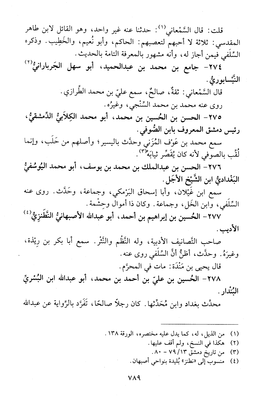 277 - الحُسين بْن إِبْرَاهِيم بْن أحمد، أبو عَبْد اللَّه الأصبهاني النَّطَنزِيّ الأديب. [المتوفى: 497 هـ]