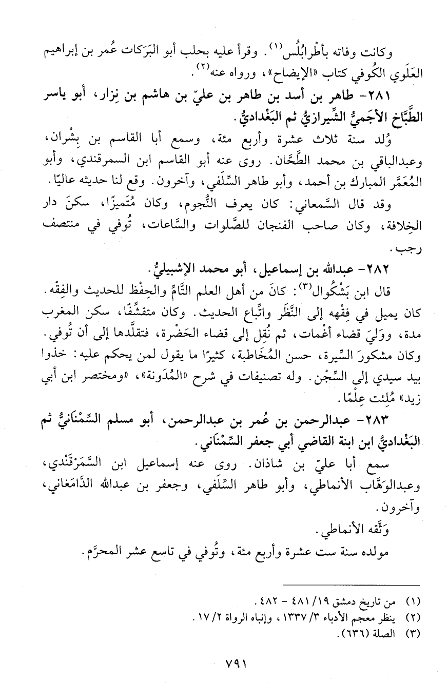 283 - عَبْد الرَّحْمَن بْن عُمَر بْن عَبْد الرَّحْمَن، أبو مُسْلِم السِّمْنانيّ ثمّ البغداديّ [المتوفى: 497 هـ]