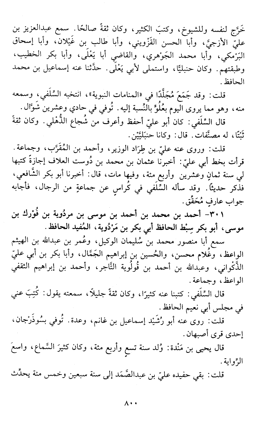 301 - أحْمَد بْن مُحَمَّد بْن أحْمَد بْن مُوسَى بْن مَرْدُوَيْه بْن فُورَك بْن موسى، أبو بَكْر سِبْط الحافظ، أبي بكر بن مردويه، المفيد الحافظ. [المتوفى: 498 هـ]