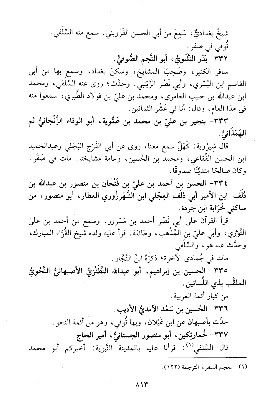 333 - بنجير بْن عليّ بْن مُحَمَّد بْن عَمُّوَيْه، أبو الوفاء الزّنْجانيّ، ثمّ الهَمَذانيّ. [المتوفى: 499 هـ]