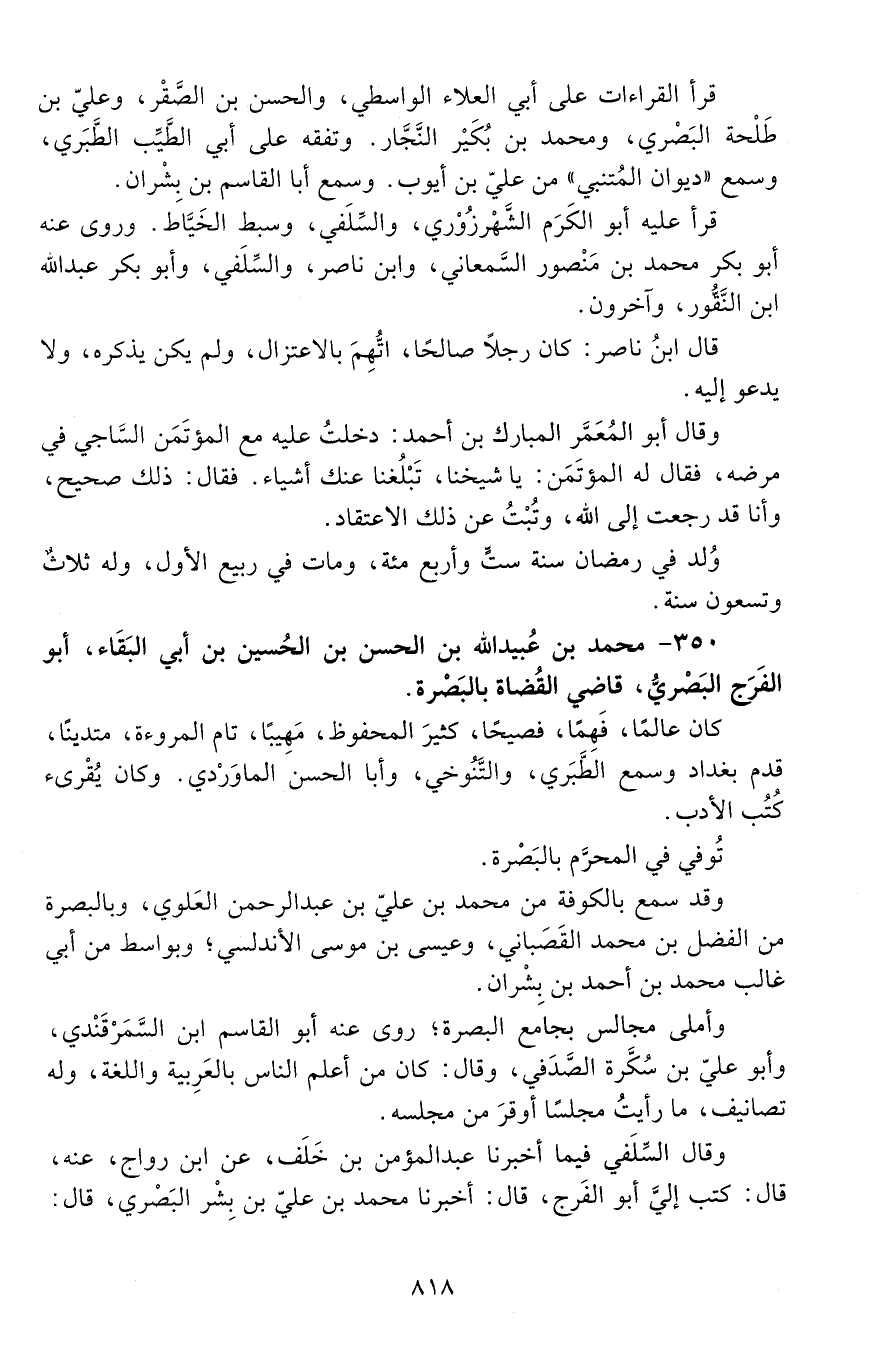 350 - مُحَمَّد بْن عُبَيْد اللَّه بْن الحَسَن بْن الحُسين بْن أَبِي البقاء، أبو الفَرَج الْبَصْرِيّ، [المتوفى: 499 هـ]