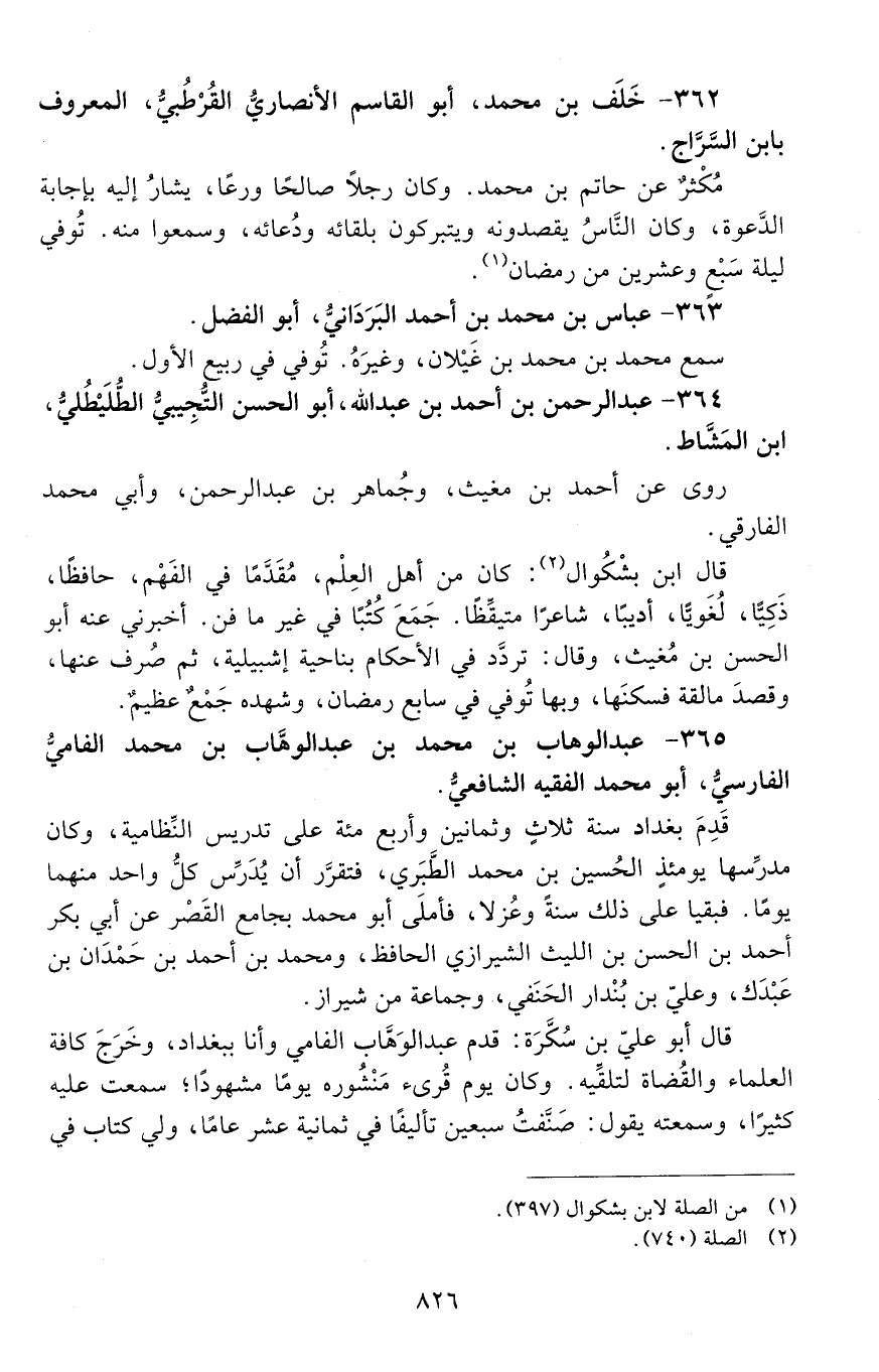362 - خَلَف بْن مُحَمَّد، أبو القاسم الْأَنْصَارِيّ القُرْطُبيّ، المعروف بابن السّرّاج. [المتوفى: 500 هـ]