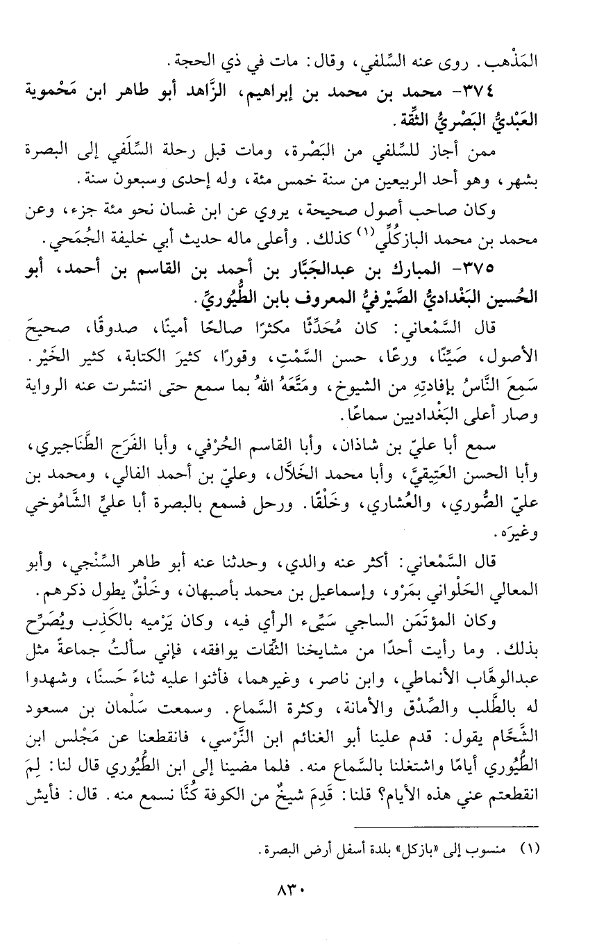 374 - مُحَمَّد بْن مُحَمَّد بْن إبراهيم، الزَّاهد أبو طاهر ابن محمويه العبدي البصري الثقة. [المتوفى: 500 هـ]