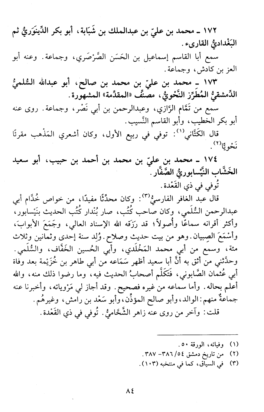 174 - محمد بن علي بن محمد بن أحمد بن حبيب، أبو سعيد الخشَّاب النَّيْسَابِوُرِيّ الصفَّار. [المتوفى: 456 هـ]