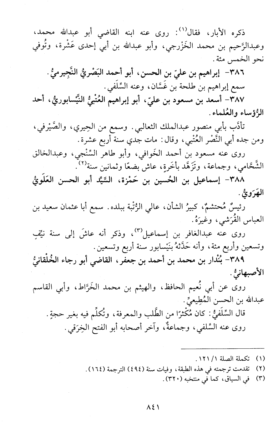 389 - بندار بن محمد بن أحمد بن جعفر، القاضي أبو رجاء الخلقانيُّ الأصبهانيُّ. [الوفاة: 491 - 500 هـ]