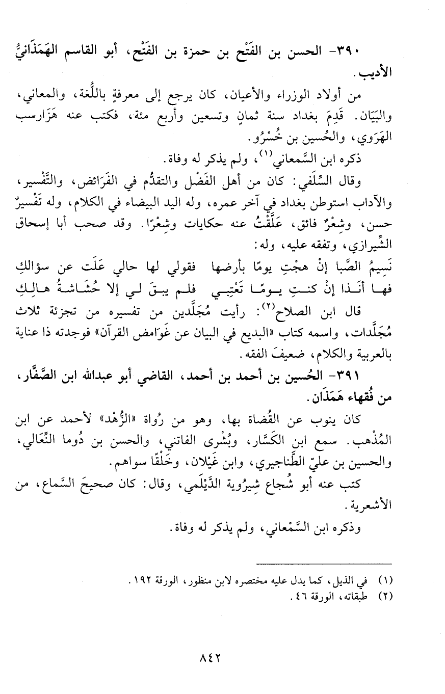 390 - الحَسَن بْن الفتح بْن حمزة بْن الفتح، أبو القاسم الهَمَذانيّ الأديب. [الوفاة: 491 - 500 هـ]