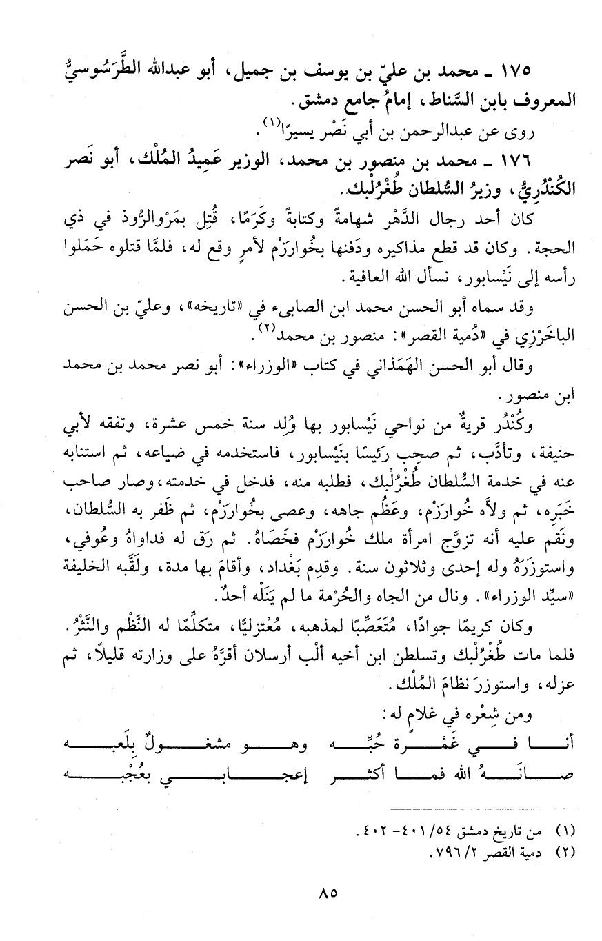 176 - محمد بن منصور بن محمد، الوزير عميد المُلك، أبو نصر الكُنْدري، [المتوفى: 456 هـ]