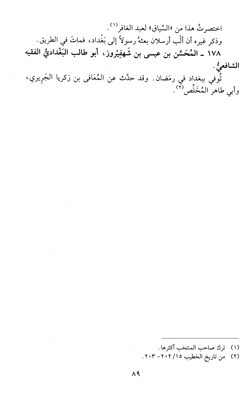 178 - المحسّن بن عيسى بن شهفيروز، أبو طالب البغداديّ الفقيه الشّافعيّ. [المتوفى: 456 هـ]