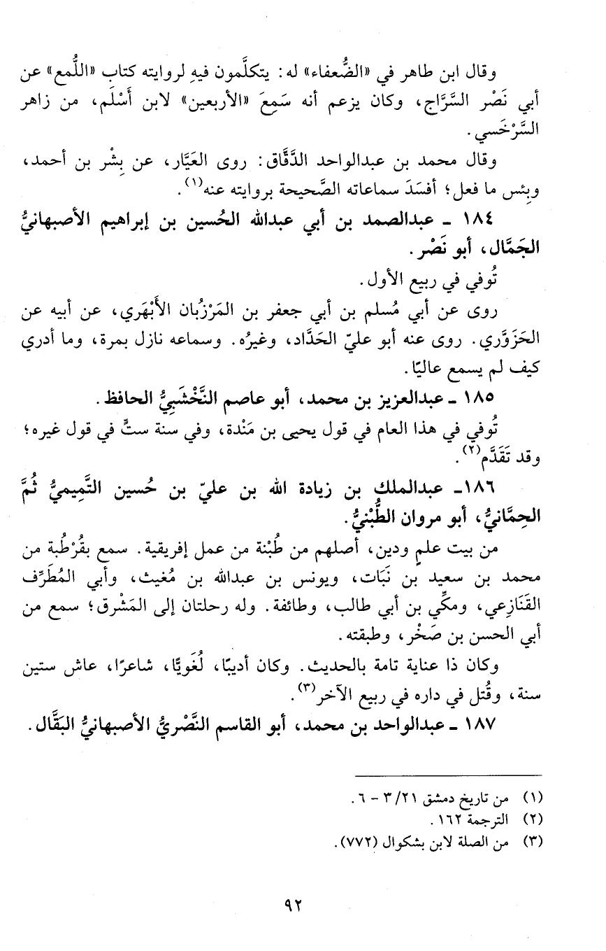 184 - عبد الصمد بن أبي عبد اللَّه الحسين بن إبراهيم الْأصبهانيّ الجمَّال، أبو نصر. [المتوفى: 457 هـ]
