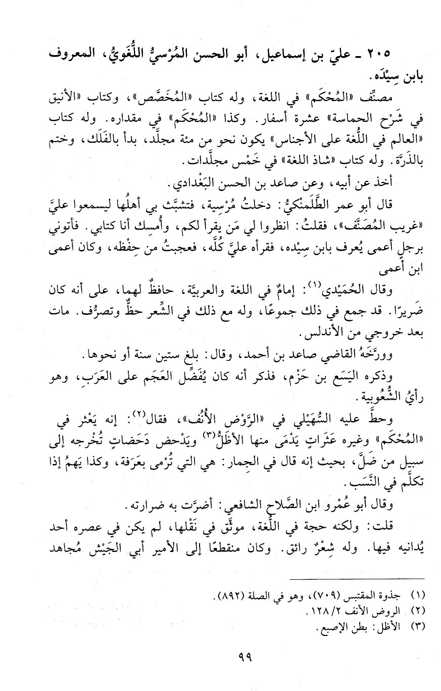 205 - عليّ بن إسماعيل، أبو الحسن المُرسيّ اللُّغَويّ، المعروف بابن سِيدَه. [المتوفى: 458 هـ]