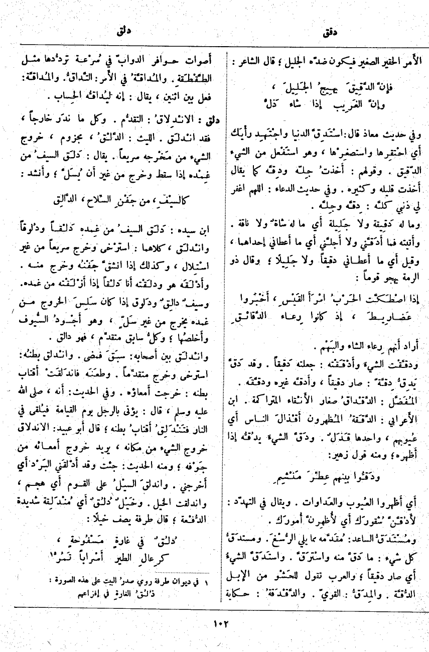 فإنَّ الدَّقِيقَ يهِيجُ الجَلِيلَ، ... وإنَّ الغَرِيب إِذَا شَاءَ ذَلْ