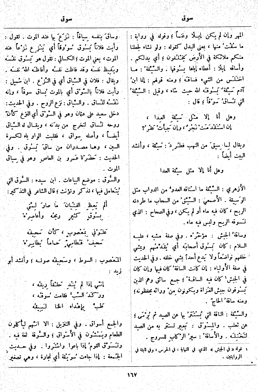 ؛ جَمْعُ سَائِقٍ وَهُمُ الَّذِينَ يَسُوقون جَيْشَ الغُزاة وَيَكُونُونَ مِنْ وَرَائِهِ يَحْفَظُونَهُ؛ وَمِنْهُ ساقةُ الْحَاجِّ. والسَّيِّقة: النَّاقَةُ الَّتِي يُسْتَتَرُ بِهَا عَنِ الصَّيْدِ ثُمَّ يُرْمَى؛ عَنْ ثَعْلَبٍ. والمِسْوَق: بَعِير تَسْتَتِرُ بِهِ مِنَ الصَّيْدِ لتَخْتِلَه. والأَساقةُ: سيرُ الرِّكابِ لِلسُّرُوجِ. وساقَ بِنَفْسِهِ سِيَاقًا: نَزَع بِهَا عِنْدَ الْمَوْتِ. تَقُولُ: رَأَيْتُ فلاناً يَسُوق سُوُوقاً أَيْ يَنْزِع نَزْعاً عِنْدَ الْمَوْتِ، يَعْنِي الْمَوْتَ؛ الْكِسَائِيُّ: تَقُولُ هُوَ يَسُوق نفْسَه ويَفِيظ نفسَه وَقَدْ فَاظَتْ نفسُه وأَفاظَه اللَّهُ نفسَه. وَيُقَالُ: فُلَانٌ فِي السِّياق أَيْ فِي النَّزْع. ابْنُ شُمَيْلٍ: رَأَيْتُ فُلَانًا بالسَّوْق أَيْ بِالْمَوْتِ يُساق سَوْقًا، وَإِنَّهُ نَفْسه لتُساق. والسِّياق: نَزْعُ الرُّوحِ. وَفِي الْحَدِيثِ: