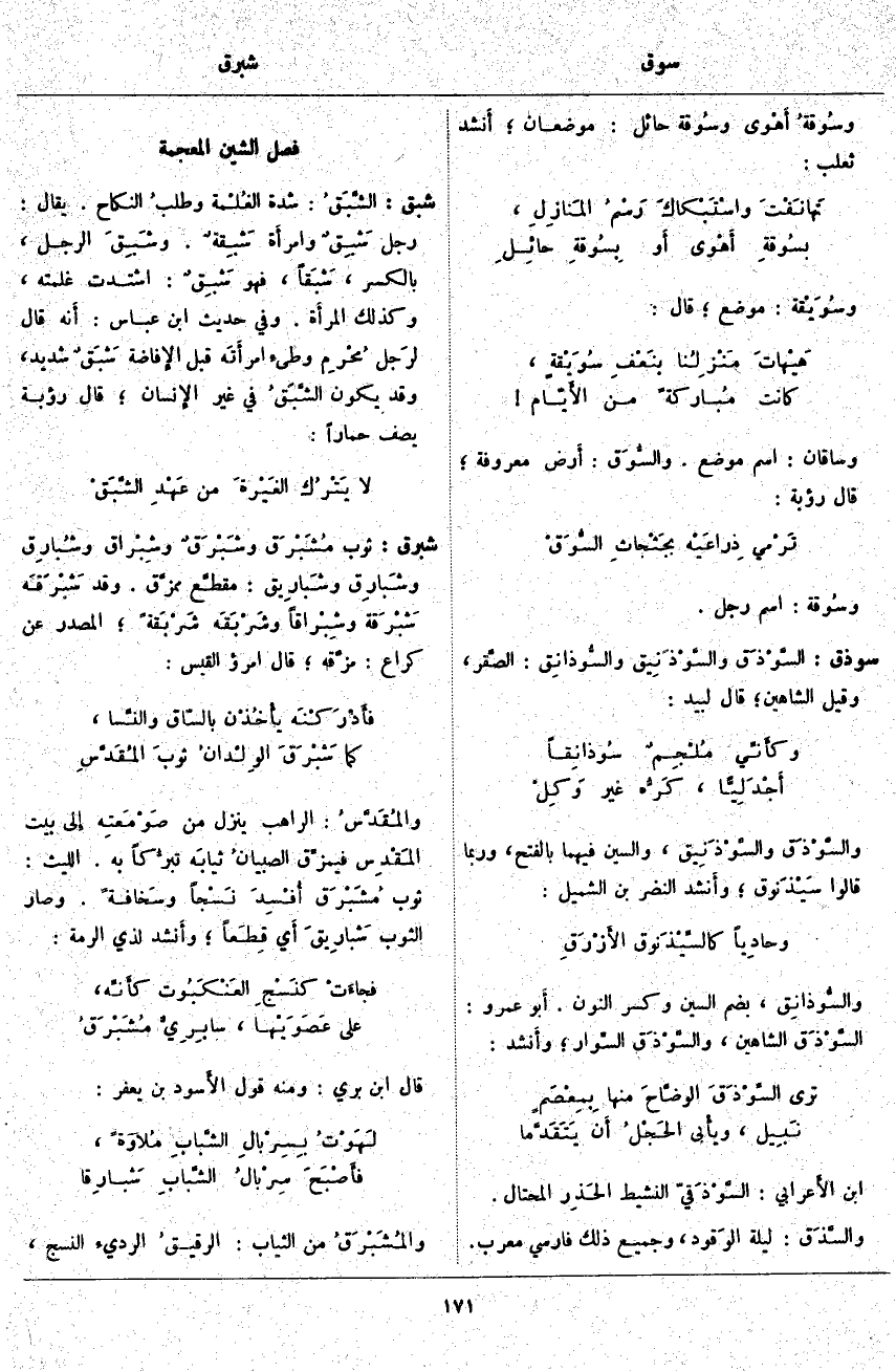 شبق: الشَّبَقُ: شِدَّةُ الغُلْمة وطلبُ النِّكَاحِ. يُقَالُ: رَجُلٌ شَبِقٌ وَامْرَأَةٌ شَبِقةٌ. وشَبِقَ الرَّجُلُ، بِالْكَسْرِ، شَبَقاً، فَهُوَ شَبِقٌ: اشْتَدَّتْ غُلْمَتُهُ، وَكَذَلِكَ الْمَرْأَةُ. وَفِي حَدِيثِ