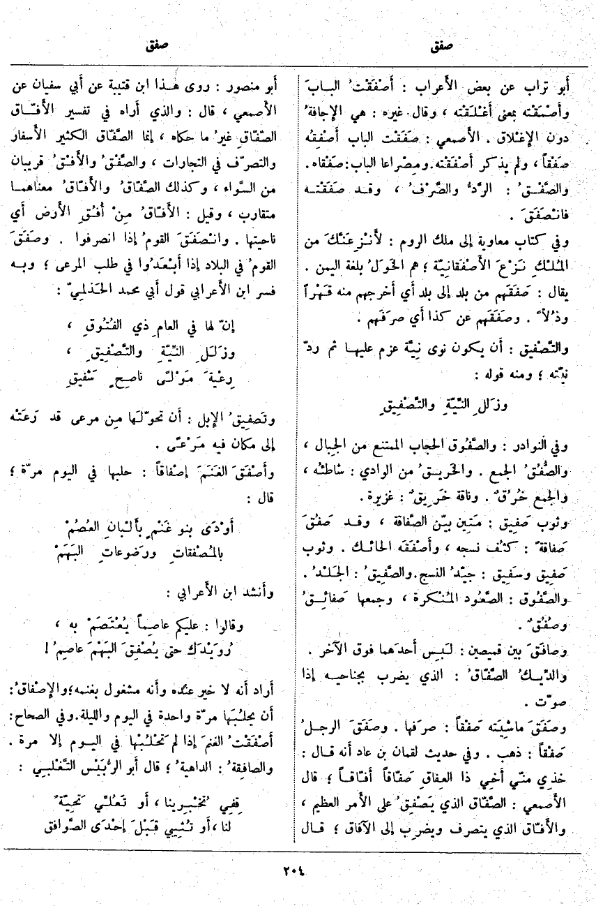 ؛ قَالَ الأَصمعي: الصَّفّاق الَّذِي يَصْفِقُ عَلَى الأَمر الْعَظِيمِ، والأَفّاق الَّذِي يَتَصَرَّفُ ويضرِب إِلى الْآفَاقِ؛ قَالَ أَبو مَنْصُورٍ: رُوِيَ هَذَا ابْنُ قُتَيْبَةَ عَنْ أَبي سُفْيَانَ عَنِ الأَصمعي، قَالَ: وَالَّذِي أَراه فِي تَفْسِيرِ الأَفّاق الصّفّاقِ غيرُ مَا حَكَاهُ، إِنَّما الصَّفّاق الْكَثِيرُ الأَسفار وَالتَّصَرُّفِ فِي التِّجَارَاتِ، والصَّفْقُ والأَفْقُ قَرِيبَانِ مِنَ السَّواء، وَكَذَلِكَ الصَّفّاقُ والأَفّاقُ مَعْنَاهُمَا مُتَقَارِبٌ، وَقِيلَ: الأَفّاقُ مِنْ أُفُقِ الأَرض أَي نَاحِيَتِهَا. وانْصَفَقَ القومُ إِذا انْصَرَفُوا. وصَفَقَ القومُ فِي الْبِلَادِ إِذا أَبْعَدُوا فِي طَلَبِ الْمَرْعَى؛ وَبِهِ فَسَّرَ ابْنُ الأَعرابي قَوْلُ أَبي مُحَمَّدٍ الحَذلمِيّ: