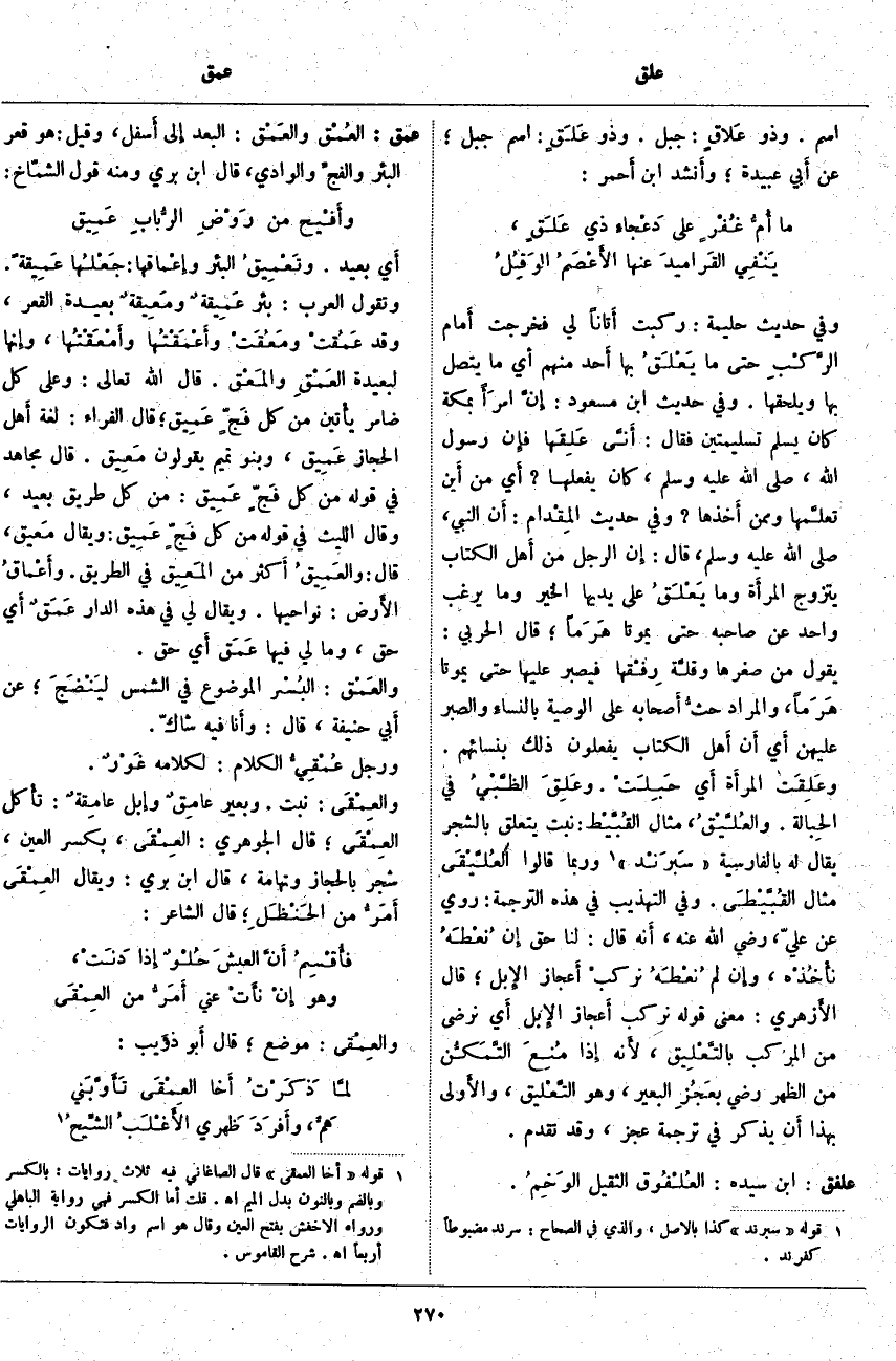 (2). قوله [أخا العمقى] قال الصاغاني فيه ثلاث روايات: بالكسر وبالضم وبالنون وبدل الميم انتهى. قلت أما الكسر فهي رواية الباهلي ورواه الأَخفش بفتح العين وقال هو اسم واد فتكون الروايات أربعاً انتهى. شرح القاموس.
