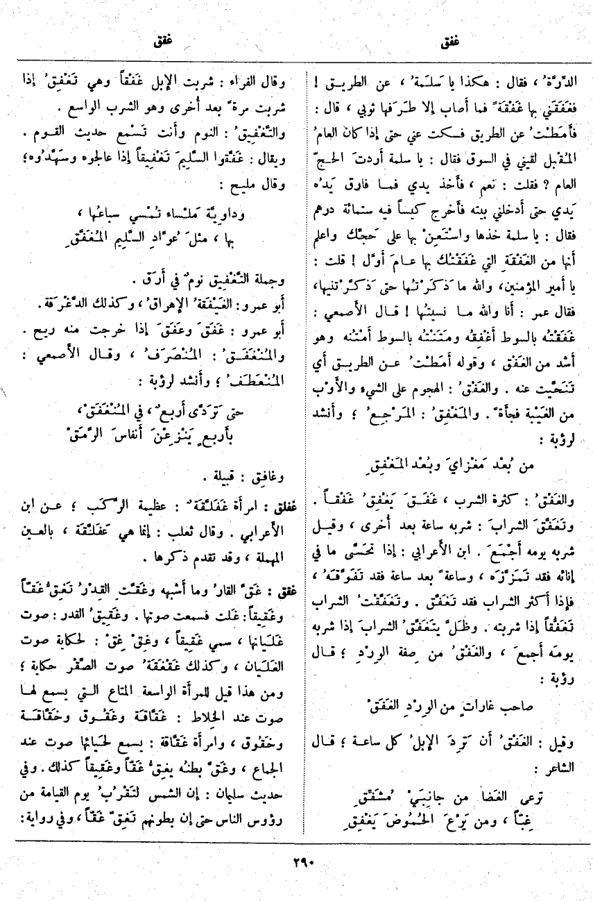 وَجُمْلَةُ التَّغْفِيق نومٌ فِي أَرَق. أَبُو عَمْرٍو: الغَيْفَقَةُ الإِهراقُ، وَكَذَلِكَ الدَّغْرَقة. أَبو عَمْرٍو: غَفَقَ وعَفَقَ إِذَا خَرَجَتْ مِنْهُ رِيحٌ. والمُنْغَفَقُ: المُنْصَرَفُ، وقال الأَصعمي: المُنْعَطَفُ؛ وأنشد لرؤبة: