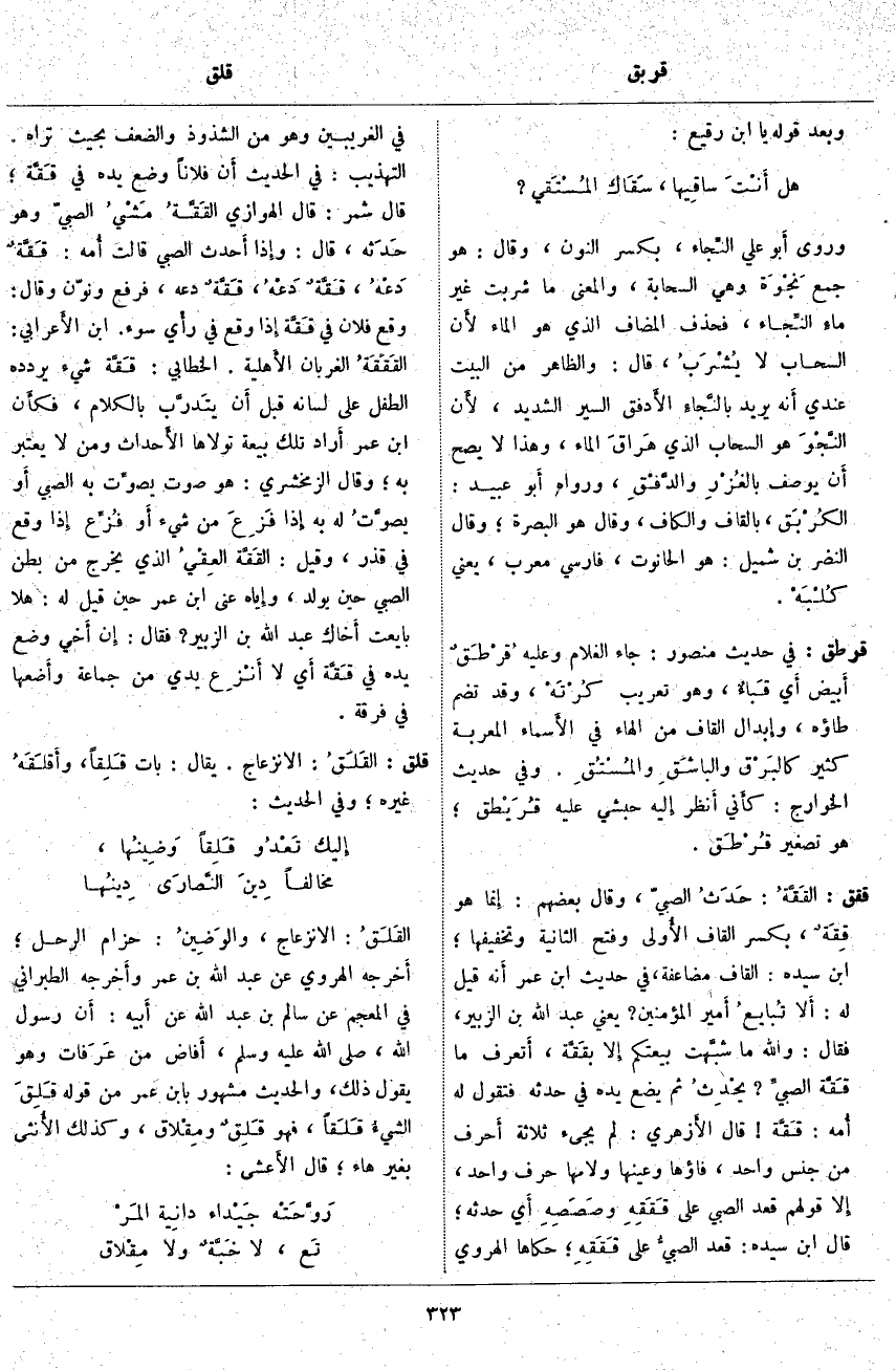 ؛ الفاقةُ: الْحَاجَةُ وَالْفَقْرُ. والمُفْتاق: الْمُحْتَاجُ؛ وَرَوَى الزَّجَّاجِيُّ فِي أَماليه بِسَنَدِهِ عَنْ أَبِي عُبَيْدَةَ قَالَ: خَرَجَ سَامَةُ بْنِ لؤَي بْنِ غَالِبِ مِنْ مَكَّةَ حَتَّى نَزَلَ بعُمَان وأنشأَ يَقُولُ: