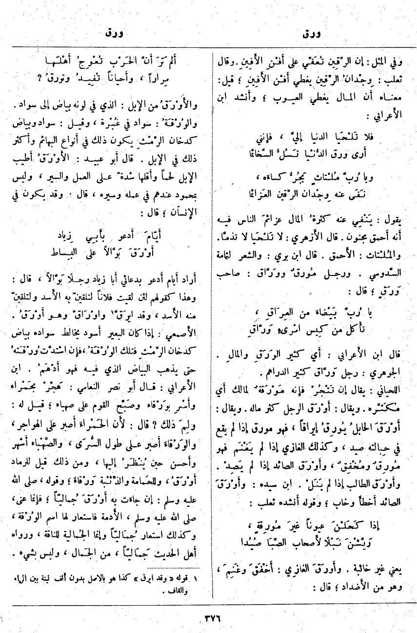 يَقُولُ: يَنْفِي عَنْهُ كثرةُ الْمَالِ عزائمَ النَّاسِ فِيهِ أَنه أَحمق مَجْنُونٌ. قَالَ الأَزهري: لَا تَلْحَيا لَا تذمَّا. والمُلْتاث: الأَحمق. قَالَ ابْنُ بَرِّيٍّ: وَالشِّعْرُ لِثُمَامَةَ السَّدوسي. وَرَجُلٌ مُورقٌ ووَرَّاق: صَاحِبُ وَرَقٍ؛ قَالَ: