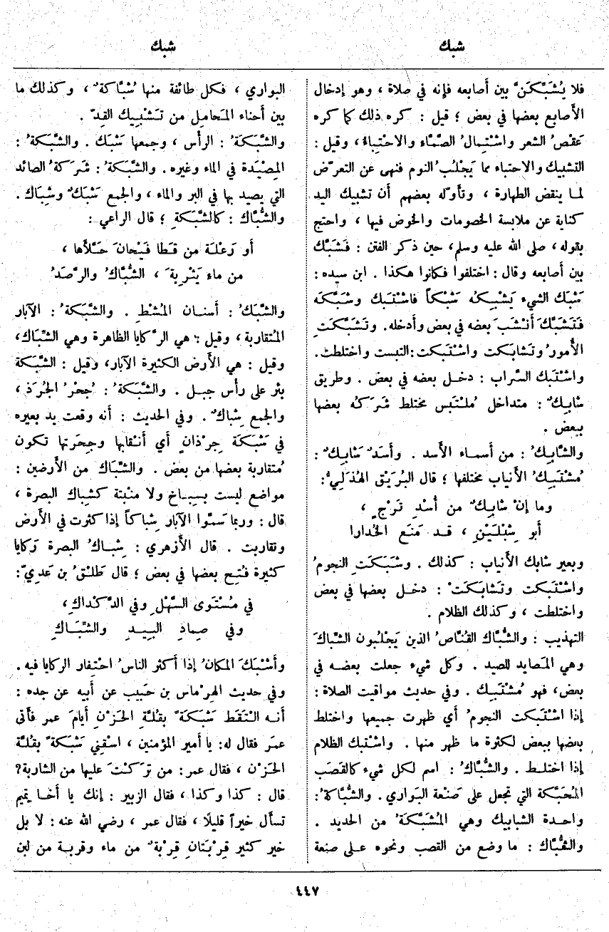 وَبَعِيرٌ شَابِكُ الأَنياب: كَذَلِكَ. وشَبَكَتِ النجومُ واشْتَبكت وتَشابَكَتْ: دَخَلَ بَعْضُهَا فِي بَعْضٍ وَاخْتَلَطَتْ، وَكَذَلِكَ الظَّلَامُ. التَّهْذِيبُ: والشُّبَّاك القُنَّاصُ الَّذِينَ يَجْلُبون الشِّباكَ وَهِيَ المَصايد لِلصَّيْدِ. وَكُلُّ شَيْءٍ جَعَلْتَ بَعْضَهُ فِي بَعْضٍ، فَهُوَ مُشْتَبِك. وَفِي حَدِيثِ مَوَاقِيتِ الصَّلَاةِ: