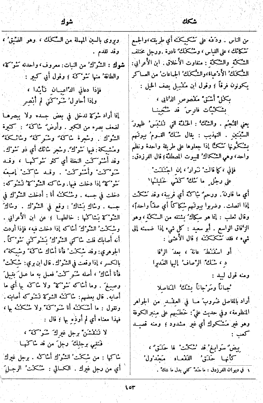 شَاكَهَا: مِنْ شِكْتُ الشَّوْك أَشاكُه. بِرِجْلِ غَيْرِكَ أَي مِنْ رِجْلِ غَيْرِكَ. الكسائي: شُكْتُ الرجلَ