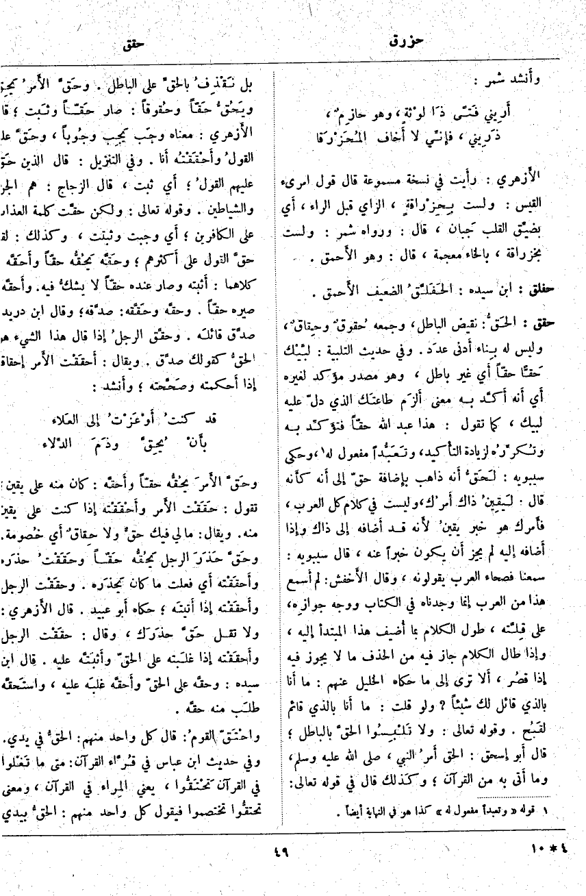 . وحَقَّ الأَمرُ يَحِقُّ ويَحُقُّ حَقّاً وحُقوقاً: صَارَ حَقّاً وثَبت؛ قَالَ الأَزهري: مَعْنَاهُ وجَب يَجِب وجُوباً، وحَقَّ عَلَيْهِ القولُ وأحْقَقْتُه أَنَا. وَفِي التَّنْزِيلِ: قالَ الَّذِينَ حَقَّ عَلَيْهِمُ الْقَوْلُ