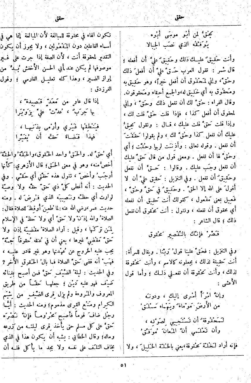 ؛ أَي وحُقَّ لَهَا أنَ تَفْعَلَ. وَمَعْنَى قَوْلِ مَنْ قَالَ حَقَّ عَلَيْكَ أَن تَفْعَلَ وجَب عَلَيْكَ. وَقَالُوا: حَقٌّ أَن تَفْعَلَ وحَقِيقٌ أَن تَفْعَلَ. وَفِي التَّنْزِيلِ: حَقِيقٌ عَلى أَنْ لَا أَقُولَ عَلَى اللَّهِ إِلَّا الْحَقَ