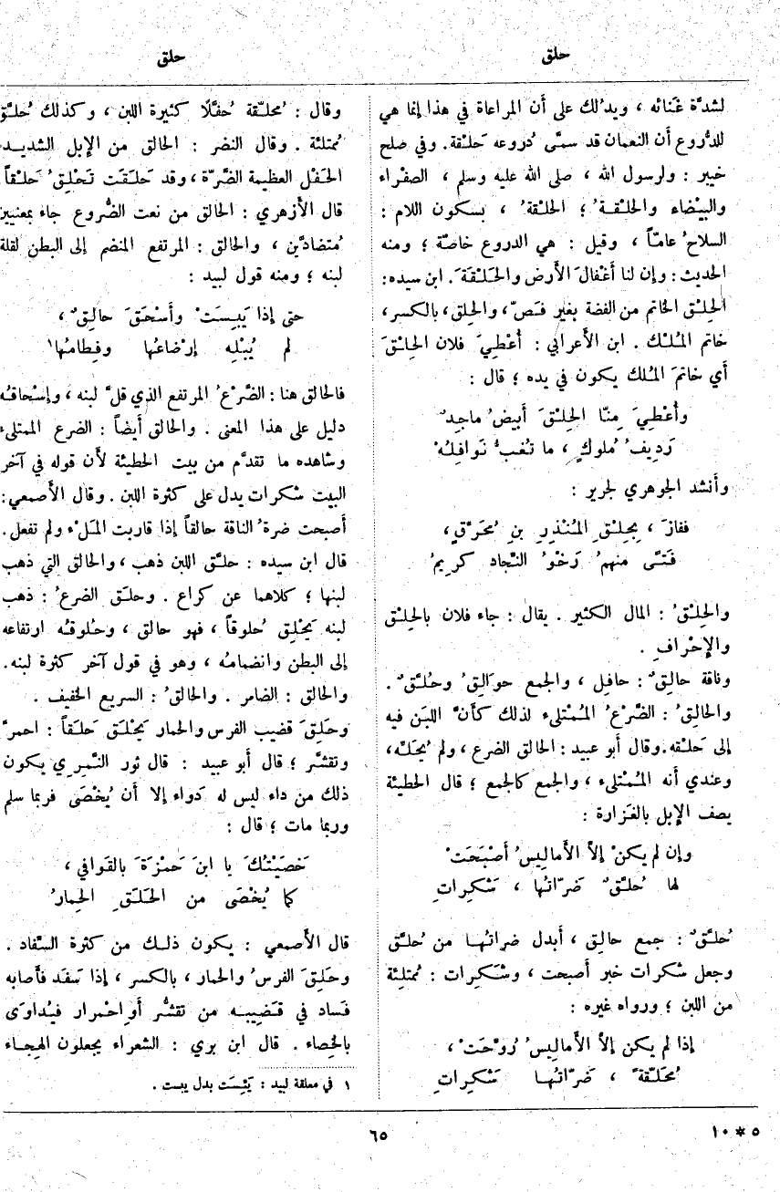 لشدَّة غَنائه، ويدُلك عَلَى أَن الْمُرَاعَاةَ فِي هَذَا إِنما هِيَ للدُّروع أَن النُّعْمَانَ قَدْ سمَّى دُروعه حَلْقة. وَفِي صُلْحِ خَيْبَرَ: