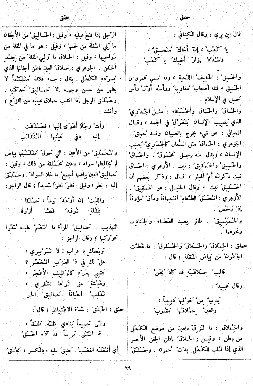 حملق: الحِمْلاقُ والحُمْلاقُ والحُمْلوقُ: مَا غَطَّت الجُفُونُ مِنْ بَياضِ المُقْلةِ؛ قَالَ: