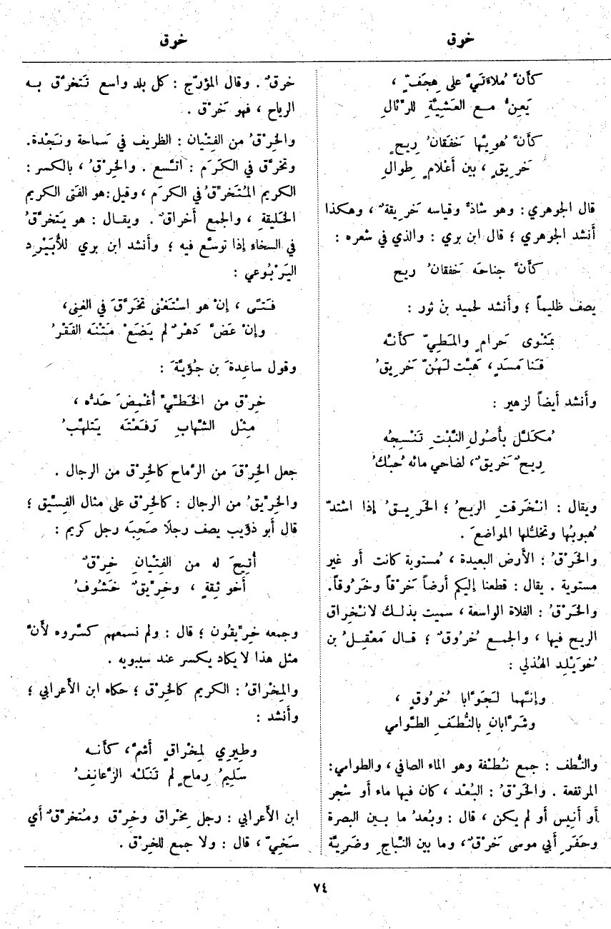 قَالَ الْجَوْهَرِيُّ: وَهُوَ شاذٌّ وَقِيَاسُهُ خَرِيقةٌ، وَهَكَذَا أَنشد الْجَوْهَرِيُّ؛ قَالَ ابْنُ بَرِّيٍّ: وَالَّذِي فِي شِعْرِهِ: