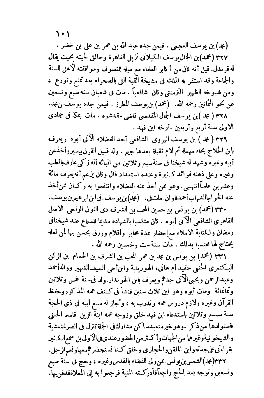 328 - مُحَمَّد بن يُوسُف الْجمال الْمَقْدِسِي / قَاضِي مقدشوه. مَاتَ بِمَكَّة فِي جُمَادَى الأولى سنة أَربع وَأَرْبَعين. أرخه ابْن فَهد.