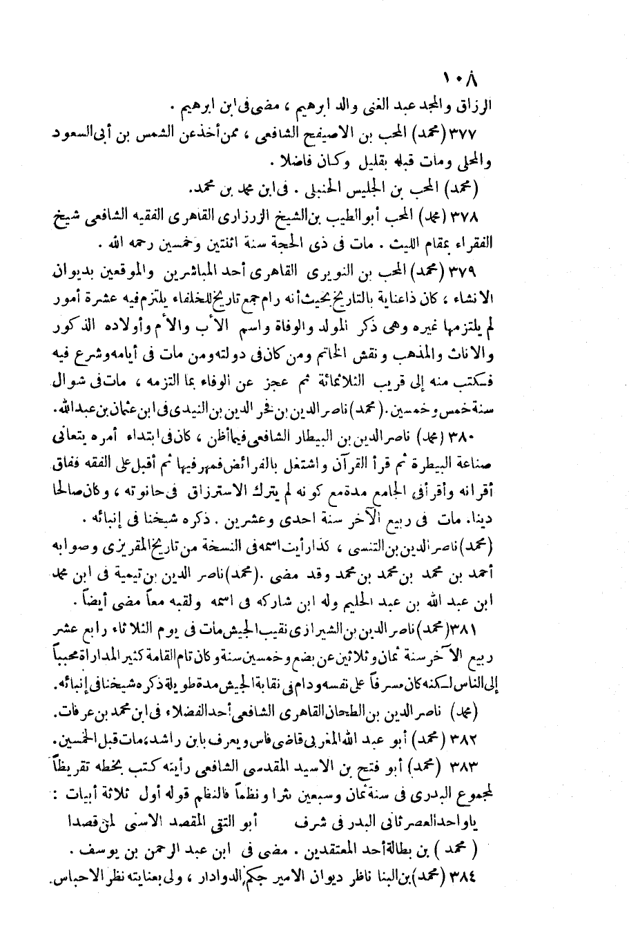 377 - مُحَمَّد الْمُحب بن الأصيفح الشَّافِعِي، / مِمَّن أَخذ عَن الشَّمْس بن أبي السُّعُود والمحلي)