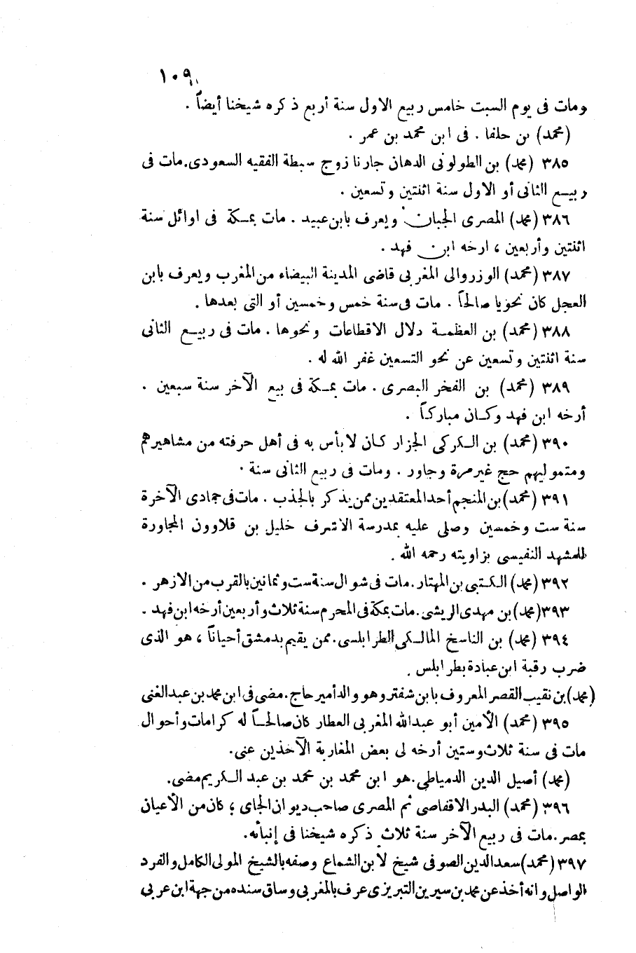 392 - مُحَمَّد الكتبي بن المهتار. / مَاتَ فِي شَوَّال سنة سِتّ وَثَمَانِينَ بِالْقربِ من الْأَزْهَر.