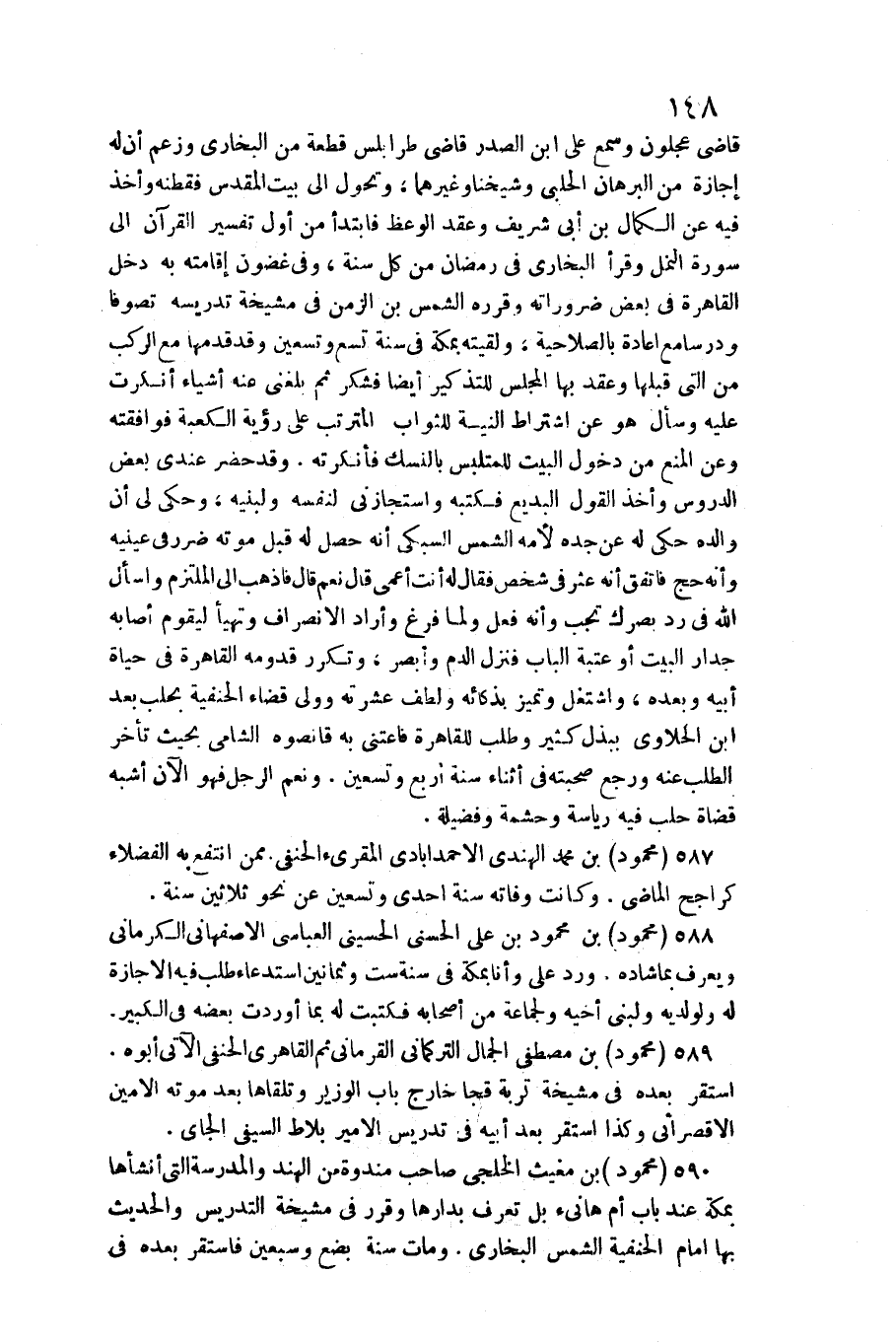 587 - مَحْمُود بن مُحَمَّد الْهِنْدِيّ الأحمد أبادي الْمُقْرِئ الْحَنَفِيّ. / مِمَّن انْتفع بِهِ الْفُضَلَاء كراجح الْمَاضِي. وَكَانَت وَفَاته سنة إِحْدَى وَتِسْعين عَن نَحْو ثَلَاثِينَ سنة.