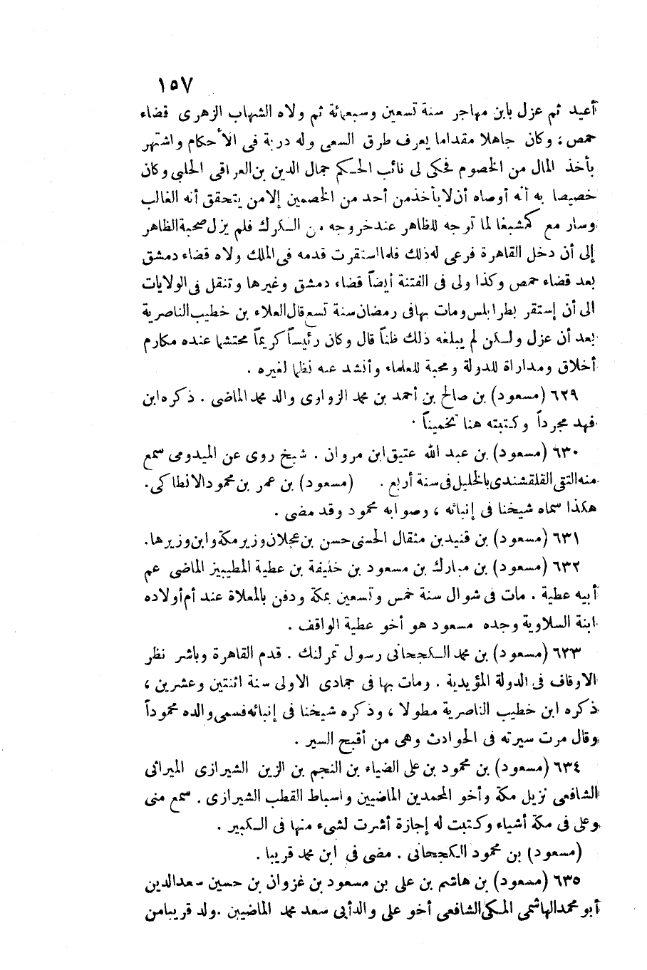 635 - مَسْعُود بن هَاشم بن عَليّ بن مَسْعُود بن غَزوَان بن حُسَيْن سعد الدّين أَبُو مُحَمَّد الْهَاشِمِي الْمَكِّيّ الشَّافِعِي أَخُو عَليّ وَالِد أبي سعد مُحَمَّد الماضيين. / ولد قَرِيبا من