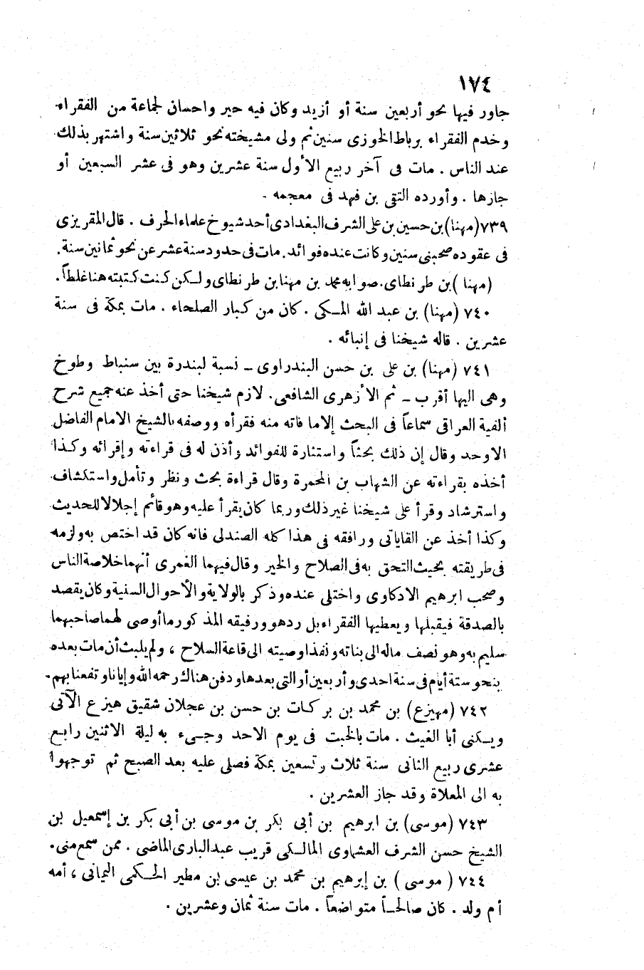 740 - مهنا بن عبد الله الْمَكِّيّ. / كَانَ من كبار الصلحاء. مَاتَ بِمَكَّة فِي سنة عشْرين. قَالَه شَيخنَا فِي إنبائه.